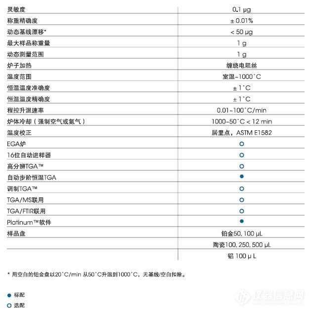 TA仪器热重分析仪Q系列主要性能参数: