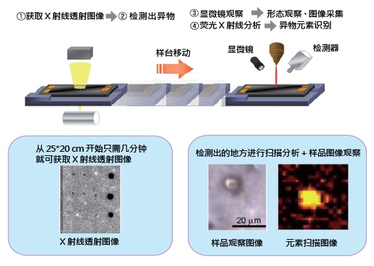 我公司认真倾听顾客们的心声,较之以往即使在销售上有所实绩的荧光X射线分析装置也会遇到的难题,开发了“更加确切”、“更加快速”找出范围从B5到20 μm级金属异物的EA8000。